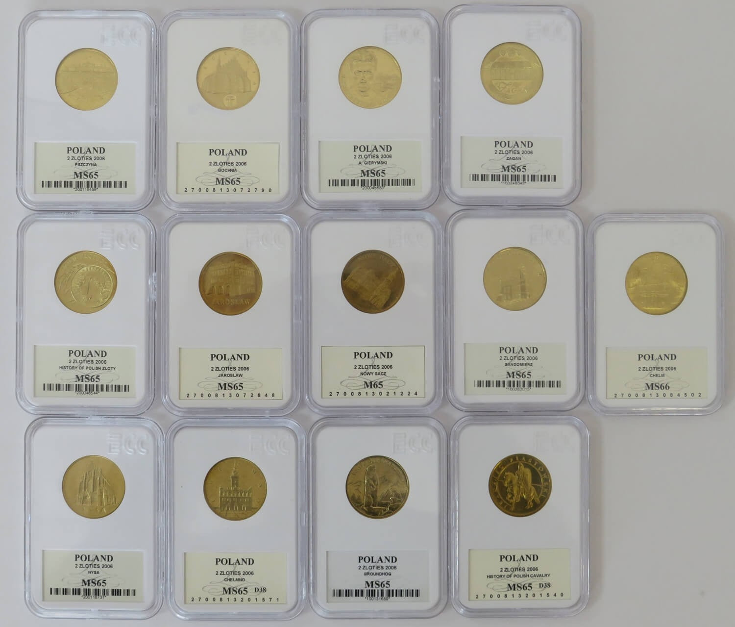 Zestaw 13 monet 2 zł GN rocznik 2006, grading GCN MS65-MS66, mennicze